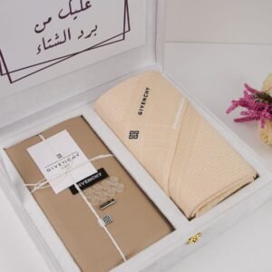 يجيك بتغليف أنيق وراقي، فيه شماغ جيفنشي أصلي تختارين لونه (أحمر أو أبيض) حسب ذوقك،